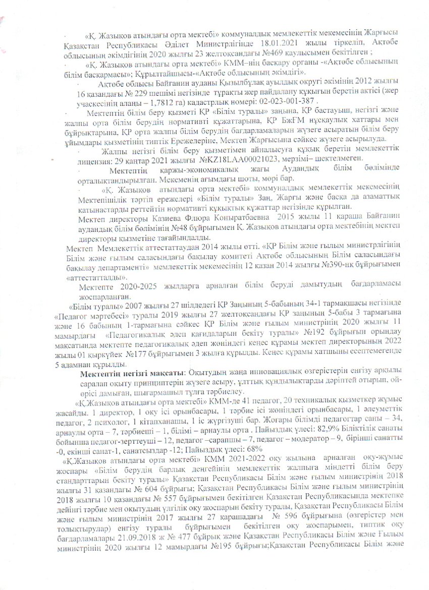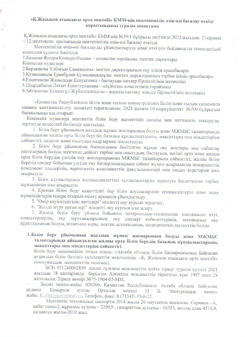 | 1 | Жазықов өзін-өзі бағалау | |